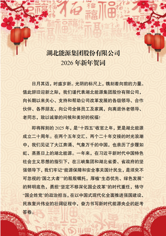 湖北能源集團股份有限公司2026年新年賀詞